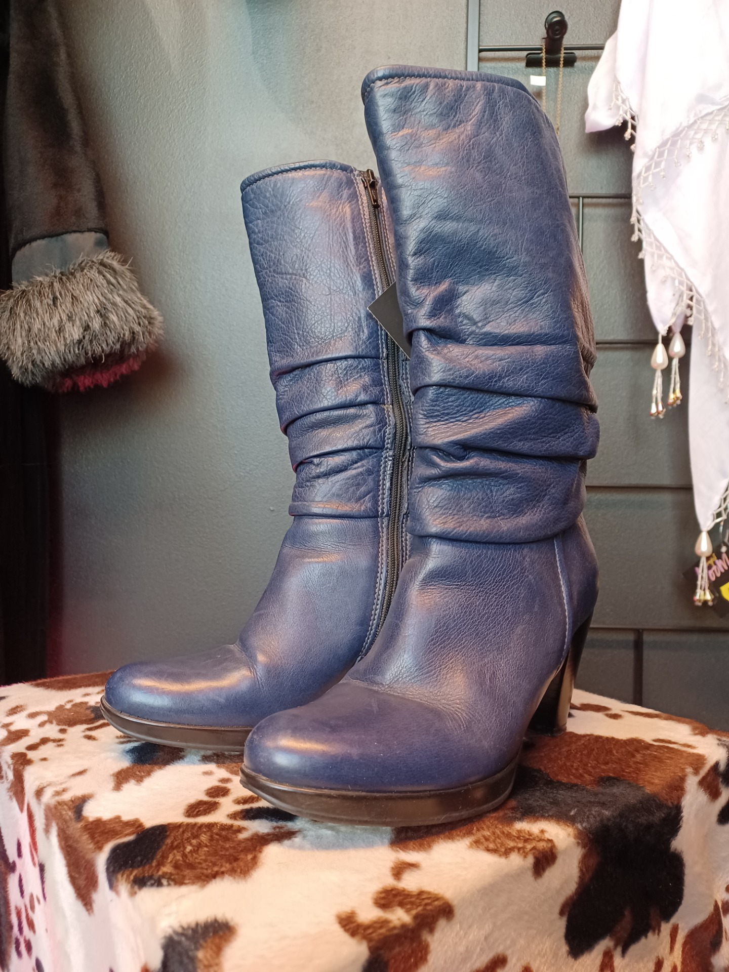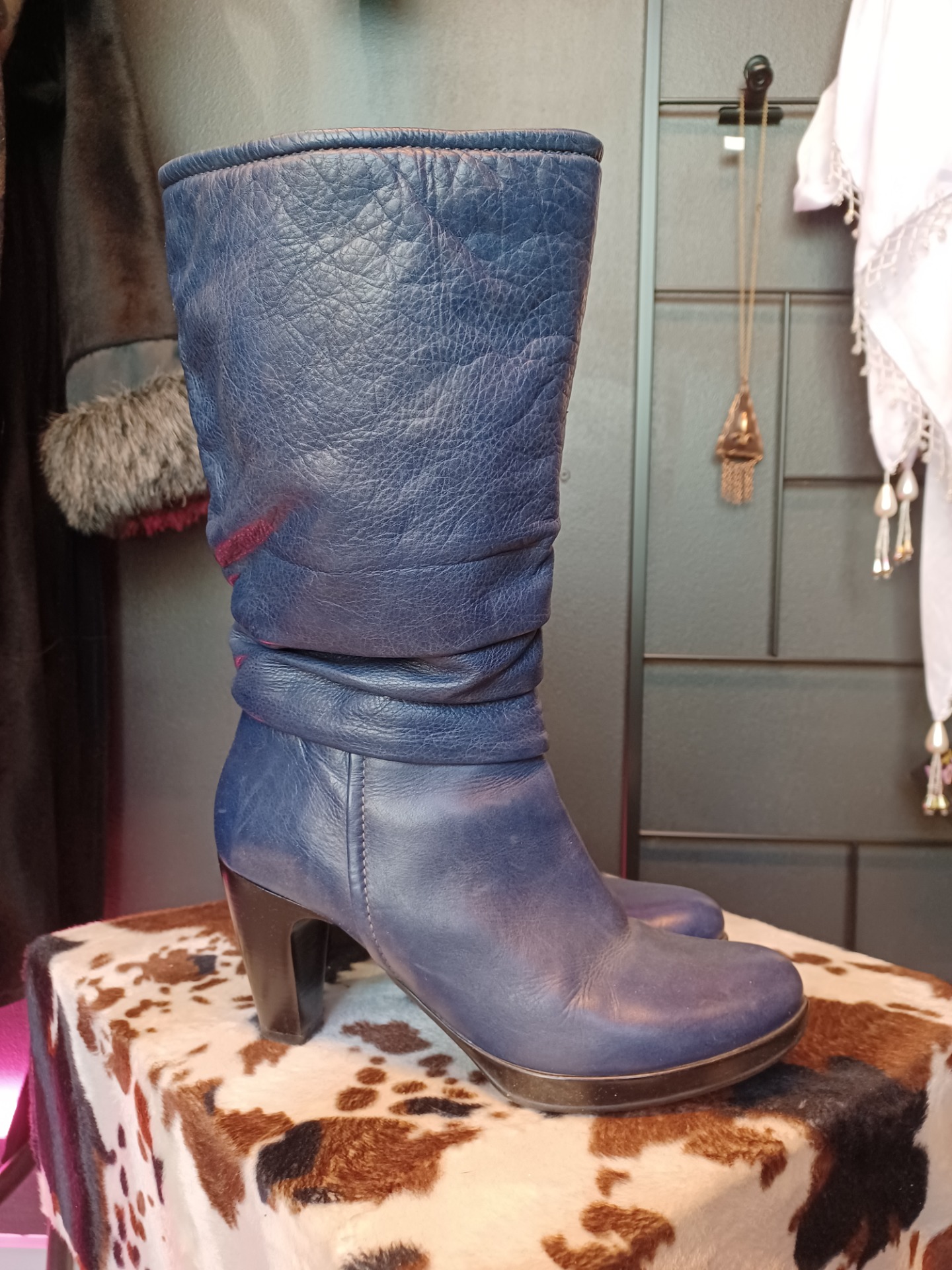 Fantasy tummansiniset saappaat nahkaa
