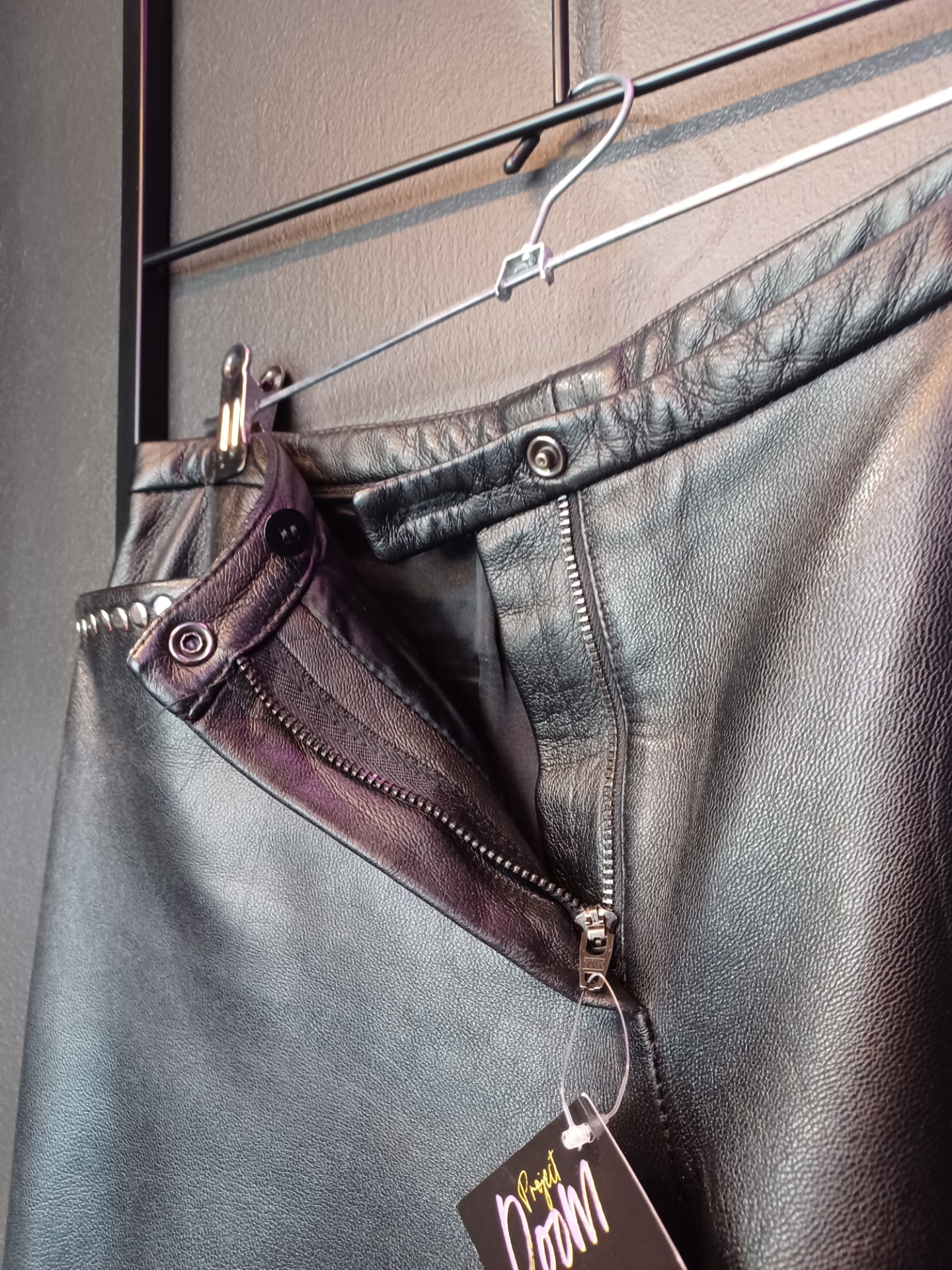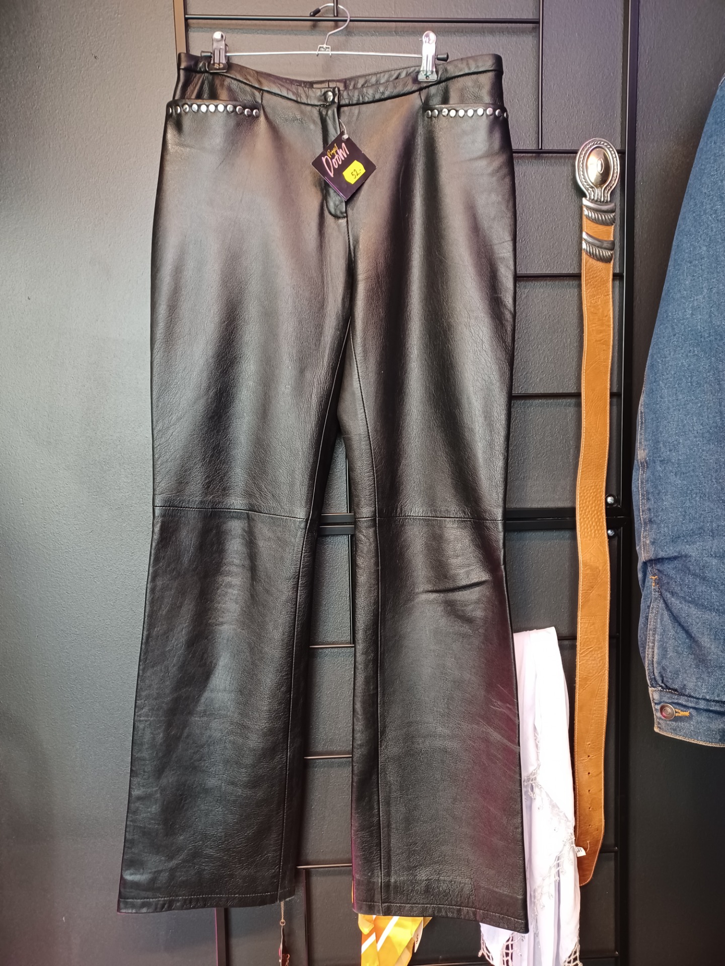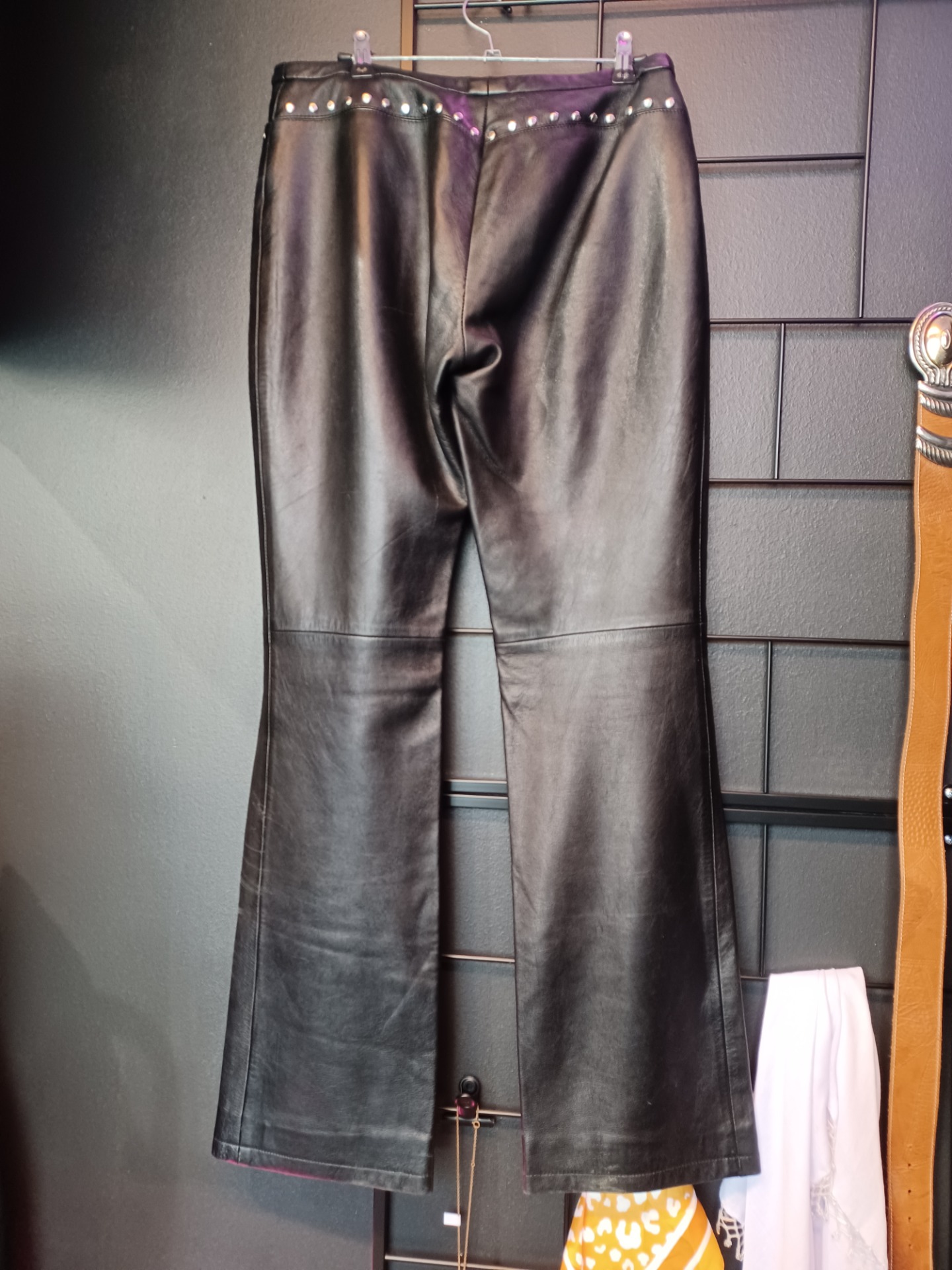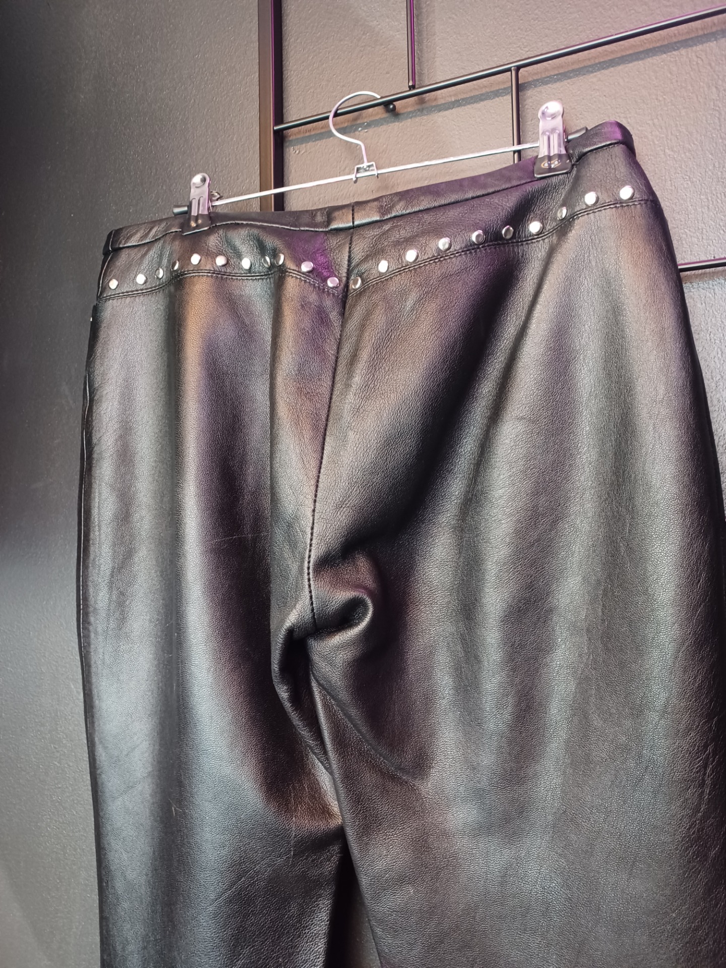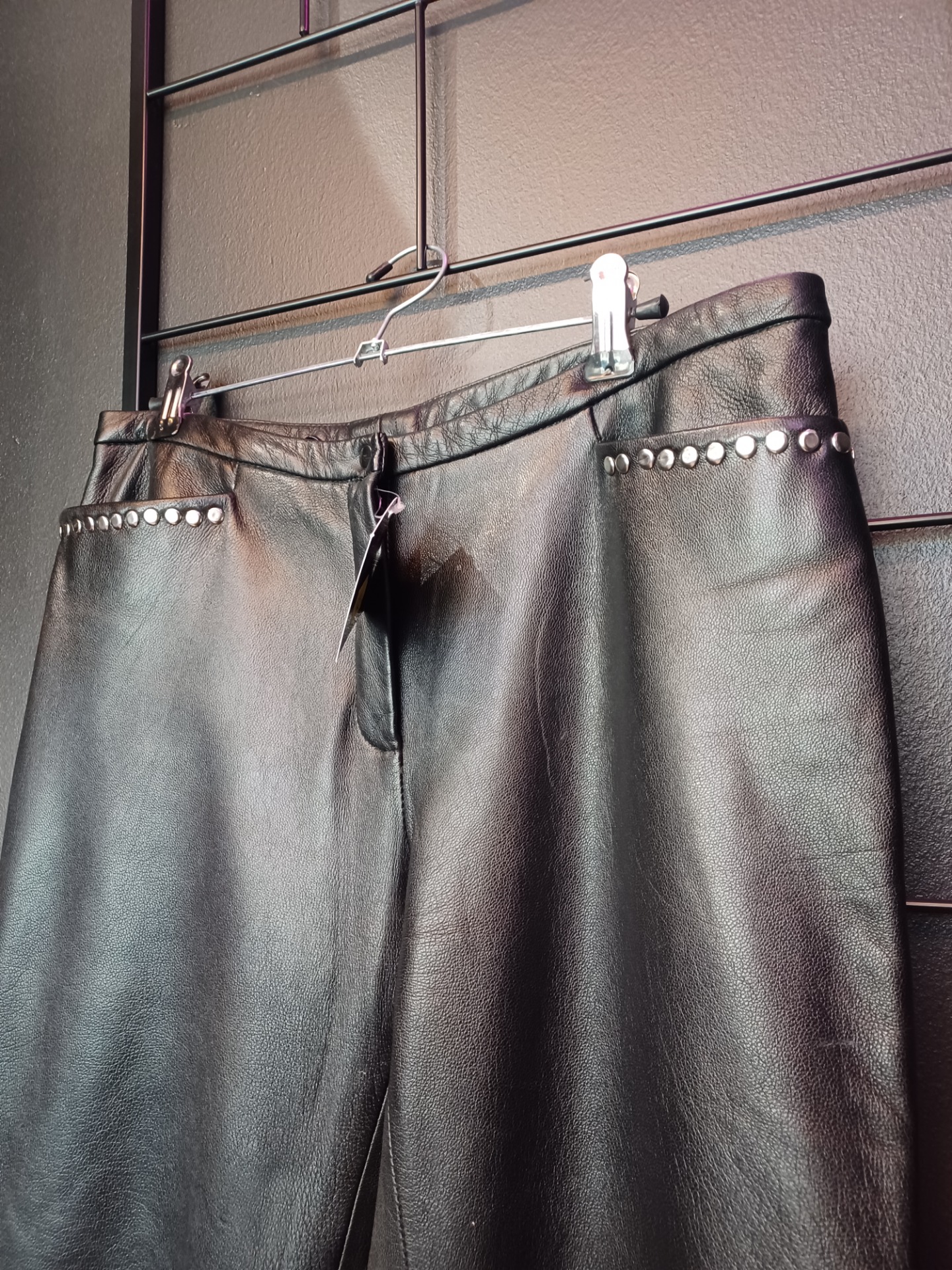 Mustat nahkahousut niiteillä