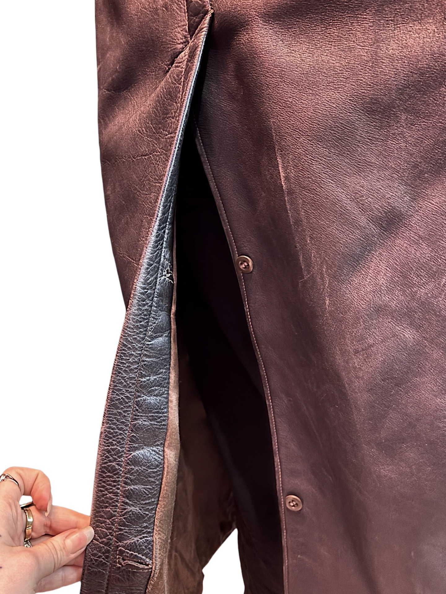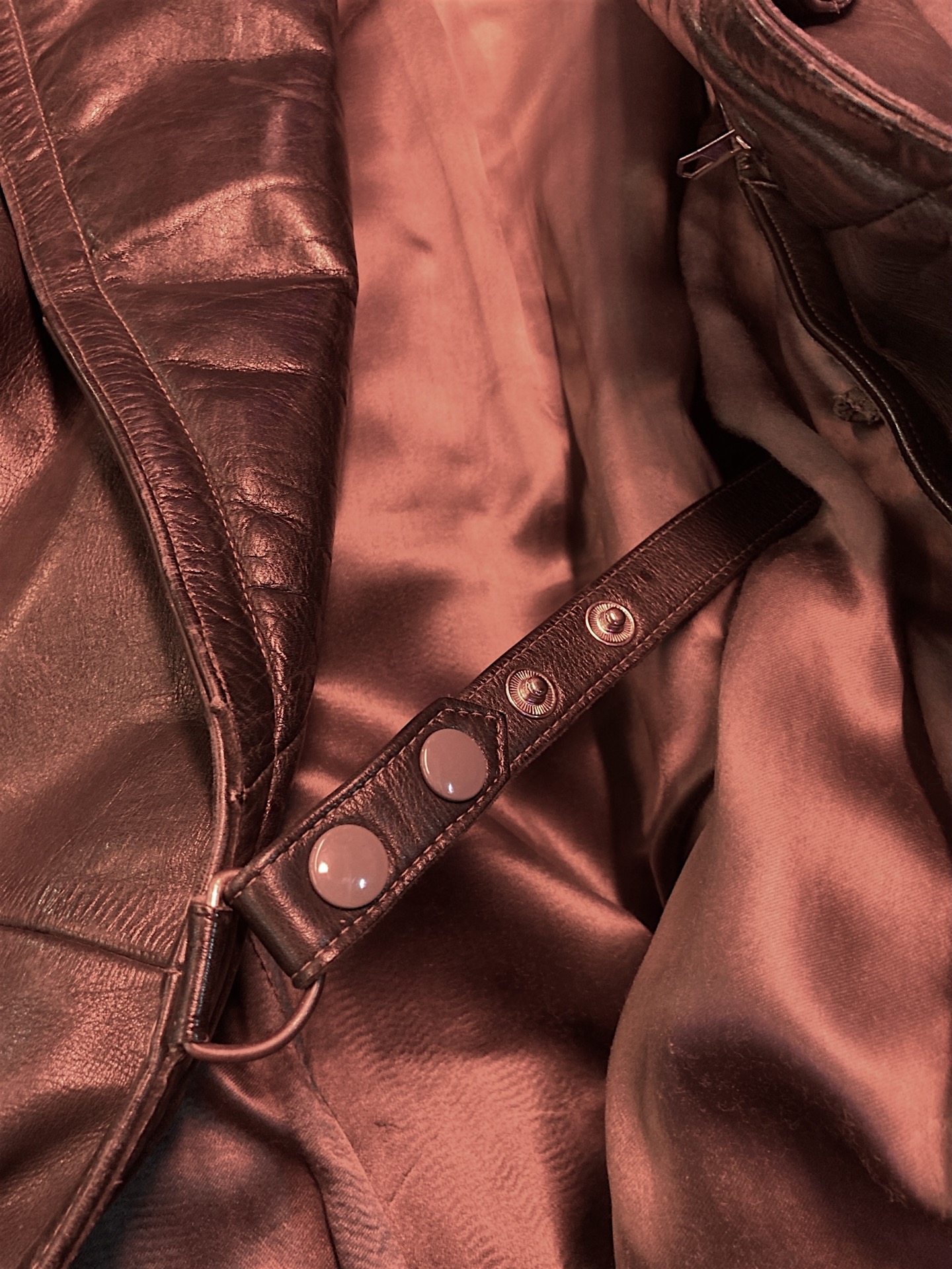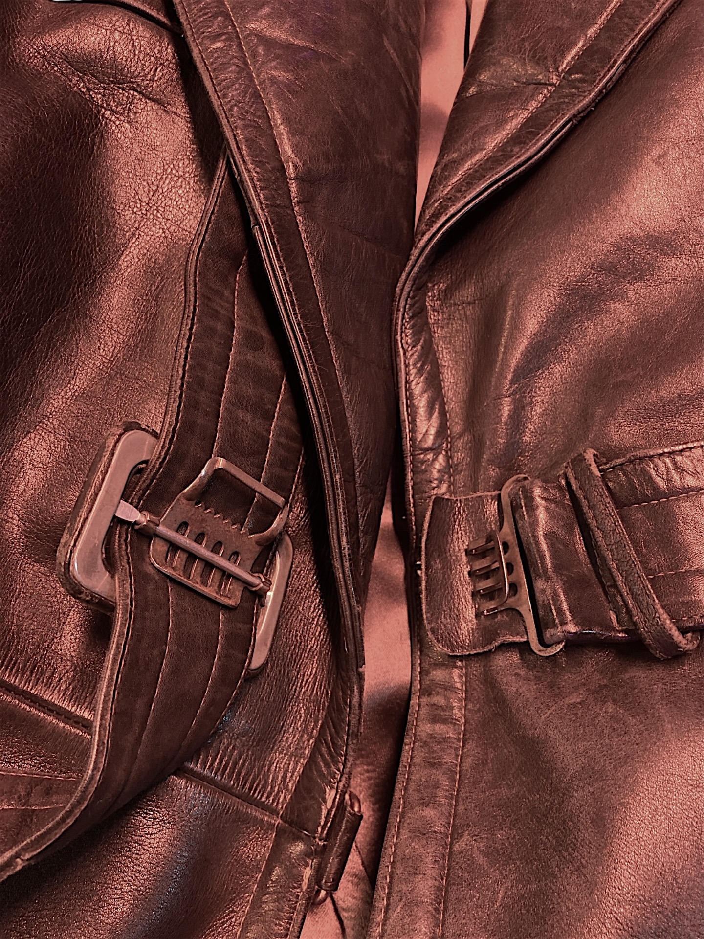 Käytön jälkiä nahassa ja vuoressa